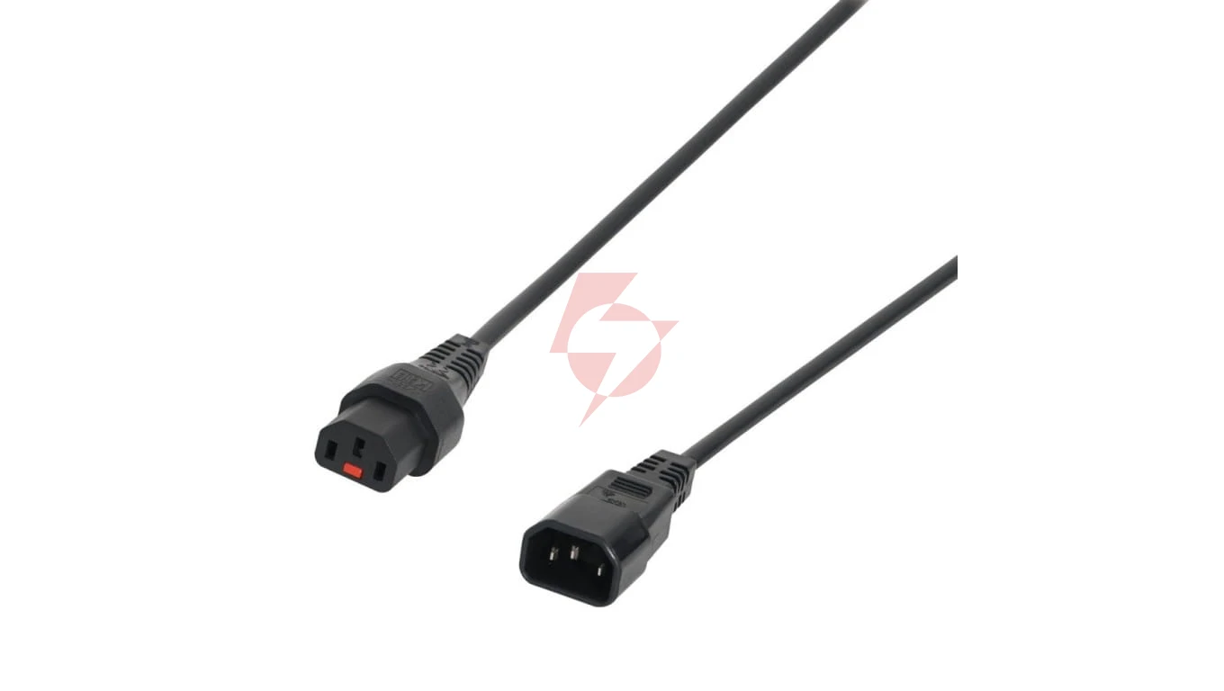 Kabel przedłużający zasilający z blokadą IEC LOCK 3x1mm2 C14/C13 prosty M/Ż 5m czarny IEC-PC1071
