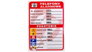 Samoprzylepna tabliczka ostrzegawcza /Telefony alarmowe 210x150/ 93/210X150/F